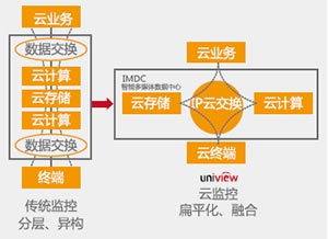 传统安防厂架构(左)VS宇视云监控架构(右)