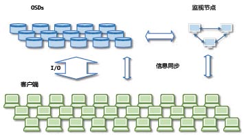 ■ 由数目可变的大规模OSDs(Object Storage Devices)组成的机群,负责存储所有的数据;