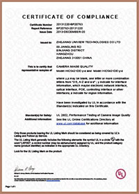 宇视在2013年12月20日成为国内首家通过UL2802认证的企业,HIC5421DE,HIC5401DE两款产品均获得UL很高的评价。