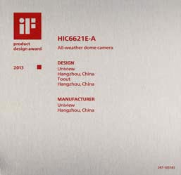 iF评选项目组评语:宇视HIC6621-A能有效满足极限温度(-40~70℃)、恶劣气候环境(尤其是沙尘天气)下的监控应用。自动除雾和支持IP67等级的防水设计,独特的底部圆形视窗和顶部防尘边缘设计,使得HIC6621-A完全适用任何户外环境。多级智能温度控制和功耗调节机制,则使其电耗降低超过30%。拟人化的“高清大眼睛”设计,使得HIC6621-A用户观感良好,同时采用整机快装结构,单人便可实现快速安装。