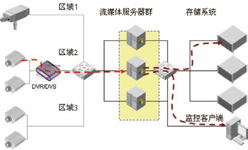 在DVR 诞生之后,因为DVR 的存储容量相对较小,2005 年起,DAS(Direct AttachedStorage-- 直接附加存储)曾经占据了一段市场主流地位。采用DAS 方案存储主要包括PC式DVR+DAS 的存储解决方案和嵌入式DVR+服务器+DAS 的存储解决方案两种。DAS 存储解决方案由于资源利用率低,无法实现资源共享,管理分散繁琐,异构化严重及管理维护成本居高不下等一系列问题,到2008 年逐渐退出安防监控市场。