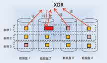 故障修复处理:通过读同一条带的其他磁盘的数据,进行异或运算,计算出读介质错误地址的正确数据,重新写到读错误的地方,修复读错误