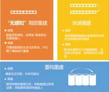 RAID-NT 块虚拟化最大的优势就是快速重建。随着硬盘容量越来越大,RAID 重建时间越来越长,导致阵列失效的风险大大增加。一旦在重建的过程中,其他硬盘发生故障,则会导致整个阵列数据的丢失。RAID-NT 主要就是为了解决这个问题而设计的。传统RAID 重建,只有RAID 阵列中的硬盘参与重建,数据重构到热备盘,受限于热备盘的瓶颈。RAID-NT 重建,整个磁盘池中所有的磁盘都会参与重建,磁盘池中的磁盘越多,参与重建的磁盘就越多,重建当然也就越快。重建的时间窗大大缩短了,阵列失效的风险也大大减少。