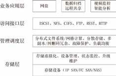 业务应用层通过云存储系统提供的各种访问接口,对用户提供丰富的业务类型,例如公有云存储提供的网盘服务、数据归档服务、高清视频监控服务等。部分云存储系统也会在这一层实现管理调度层的功能,将业务数据的冗余编码、分散存储、负载均衡、故障保护等功能和各种业务的实现紧密结合,提供非常极具特色的业务应用,和云存储系统的核心功能在管理调度层实现的通用云存储相对应,此类云存储系统的核心功能在应用层实现,可以归类为应用云存储,例如宇视公司的视频监控云存储CDS(Cloud DirectStorage)解决方案,可以为用户提供极其丰富的视频监控业务。