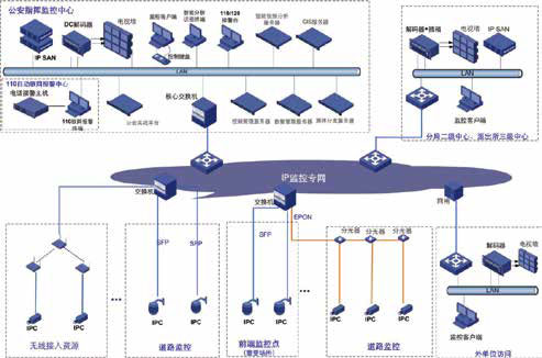 为了更好地应对智能交通领域的视频监控系统建设需求,系统的建设应基于IP 通信网络,对前端图像进行压缩编码,再经由网络传输系统,传输至交警等相关部门的指挥中心,进行信息的综合共享应用。