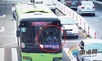执勤交警向记者指出画面中一位司机正在用手机打电话
