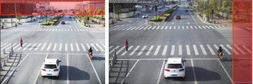 700W摄像机对比600W摄像机, 采用16:9 的宽屏比例,横向的监控场景扩展近一个车道,将更多的像素集中于道路横截断面,提高了断面监控宽度和图像清晰度。