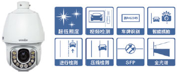 传感器:1/2.8 inch 200万像素星光CMOS图像传感 焦距范围:4.5~135mm,30倍光学变倍 内置全接口6KV 防雷SFP光+电串接