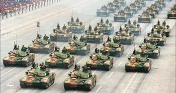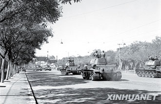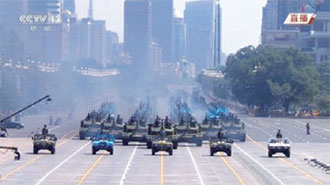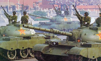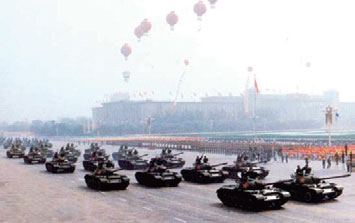 ![]() 参加建国35 周年阅兵式的59 式坦克 | ![]() 国庆35周年阅兵式上出现的79 式坦克,已经是当时我军最现代化的坦克了 |