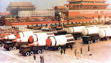 ![]() 参加1999年阅兵的9910主战坦克,该坦克方队还混编了96式主战坦克 | ![]() 1999年时的东风-31 远程导弹射程还只有8000 公里左右,并未达到设计之初要求的性能参数 |