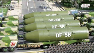 ![]() 此次阅兵式上的99A 主战坦克 | ![]() 今天的东风5B,不仅仅是增加了多弹头能力,跟更重要的是已经成为了一种廉价、耐用的成熟战略武器。值得注意的一个新特点是,东风-5B 没有如1984 年那样,将核弹头和第二级火箭分开展示,或许这表明未来东风-5B 将携带核弹头进行战备值班 |