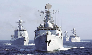 中国舰艇编队(资料图),美媒称中国舰队曾经进入阿拉斯加12 海里线以内,而此前美国从来不承认12 海里领海