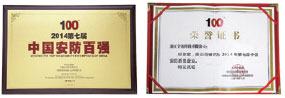 奖项二:2014年CPS 第七届中国安防百强企业