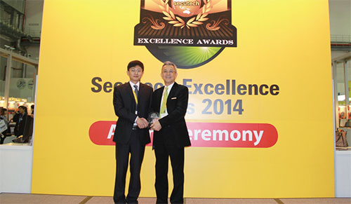 赵轩代表宇视接受Secutech Excellence Awards 2014 颁奖,宇视星光级摄像机在台北展比肩日本,在决赛的22款机型中脱颖而出