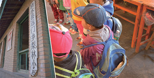 简陋的校舍和背着干馒头片做午餐的孩子