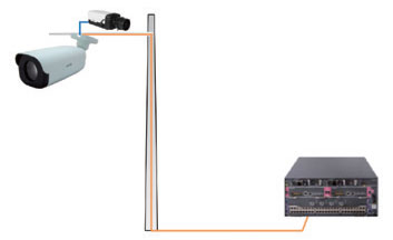 该机光口款同时具备SFP和RJ45接口,支持宇视独有的光电1+1串接组网:SFP口通过光纤接入后端交换机,空余的RJ45口可以通过网线再接入一路IPC,两个摄像机的图像都通过光纤传送到后端。光电1+1串接非常适用于路口、周界等多个摄像机就近背靠背监控的场景,大大节省了远距离光纤布线成本,而且在项目扩容时能更方便的接入就近的新增点位。