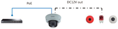 在很多智能建筑内部,为了方便布线,IPC都采用POE组网。而HIC3421DE-VF21整体功耗非常低,在通过POE组网时,在设备正常运行的同时,还能通过空余的电源口反向输出DC12V电源,给就近的拾音器、警灯、警铃等设备供电。
