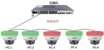HIC3221EK-2CF36 具有两个以太网口,与交换机通过手拉手方式串联组网,方便网络布线,节省网络资源,如下图: