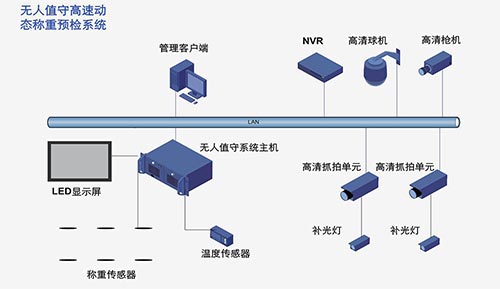 该无人值守高速动态称重预检系统主要由称重传感器、车辆抓拍与车牌识别、无人值守系统主机、客户管理平台、显示诱导指挥组成。宇视车辆识别系统为治超实现非现场执法,使治超执法和超速抓拍处罚一样简单有效、有据可依提供技术保障。