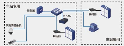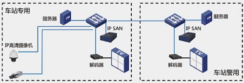 公专分建系统方案: 专用在车站统一部署前端IPC, 一套管理平台和IPSAN 存储;车站警用共享IPC,部署自己的平台和IPSAN;2 个系统间通过防火墙进行进行网络隔离;前端IPC 的图像在专用IPSAN 和警用IPSAN 同时存储,警用存储时间长于专用;站级专用平台和警用平台实现2 个系统的对接,并实现专用、警用IPC 访问权限分配。也有一些城市,对于只有相关部门关注的公共区域,由警用系统补点部署警用的IPC。