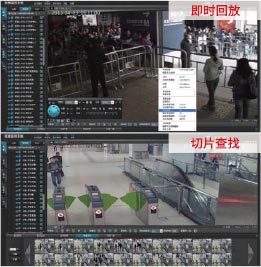 ◆ 即时、丰富的录像回放:即时回放当前时刻之前的摄像机录像,长时间录像的切片查找,同步回放某个场景的多路视频,帧预览查找目标录像位置而不影响录像正常回放;