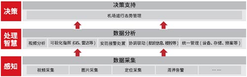 机场综合安防平台最终将各类型的数据及分析结果提供给“机场运行态势管理系统”,基于大数据的分析挖掘,进行态势感知和智慧决策。