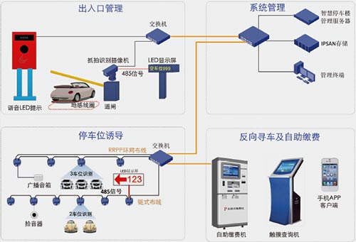 管理服务器进行全系统的抓拍识别摄像机、车位识别摄像机及IP SAN 存储设备的管理;统计管理全停车楼的车位信息,输出空车位提示信息及诱导信息,地图管理及反向寻车信息管理;为收费系统及道闸系统提供相关数据;当停车位发生安防事件异常告警时,系统客户端触发图像弹屏,告知管理员。IP SAN存储保存抓拍识别摄像机、车位识别摄像机抓拍的车牌、车辆信息及识别结果,同时保存视频图像。
