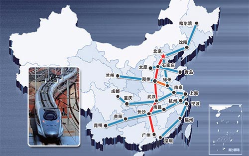 贯穿中国南北的京广高铁2298 公里成为全球高速铁路运营里程的最长纪录。美国媒体说,这距离远过纽约到迈阿密,大致相当于从伦敦穿过欧陆抵达塞尔维亚的首都;在美国坐火车走这段路需要30 小时,而京广高铁只用大约480 分钟