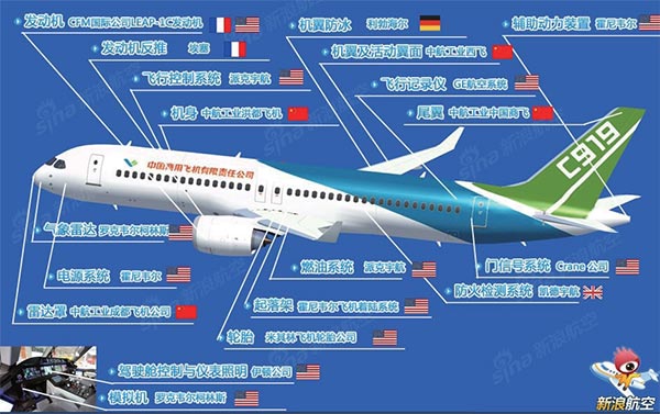 @ 中国商飞北京研究中心副主任王光秋:C919 飞机的发动机是由美国通用电气(GE)公司和法国赛峰集团合作研制的,但这并不意味着C919 就是组装货,波音和空客自己也不生产发动机和机载设备。目前的国际市场越来越专门化。搞民用飞机离不开国际合作,C919的研发生产是在以我国为主的基础上,使用国际供应商提供的部分设备,但知识产权属于中国商飞。