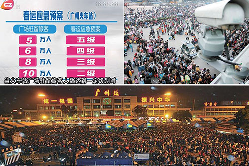 作为全国首个春运大数据精细分析和实战应用项目,宇视科技(Uniview)重点区域人群监测系统,集前端人数统计、后端数据分析、客流预测等功能于一体,覆盖广州火车站站前广场,实现对重点区域客流情况的“实时监测+ 数据分析”,为包括大规模人群聚集和拥挤踩踏事件做可靠预警,对各项应急措施的效果实施监控,为春运科学组织提供技术支持和决策辅助。