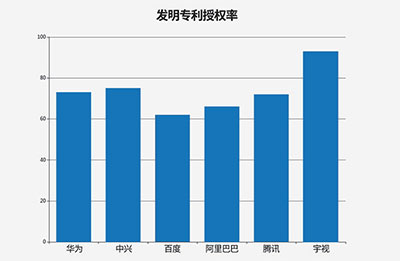 发明专利授权率,是衡量企业专利质量的试金石。在发明专利授权率方面,互联网企业的授权率最高,均高于60%,超过国内专利平均水平。2016年BAT(百度、阿里巴巴、腾讯)的发明专利授权率约70%左右,小米的发明专利授权率80%。截止2017年11月底,宇视发明专利授权总数615件,发明专利授权率高达92%,代表宇视领先的创新能力和过硬的专利质量。