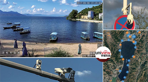图:宇视监控全程守护2017高原国际超马,抚仙湖碧波万顷,宇视监控实景截图(左上)