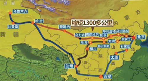 图:路线示意,最上连线(东西走向)为G7京新高速