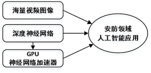 除了海量数据、深度卷积神经网络算法,还有GPU 或神经网络硬件加速引擎也在快速安防应用领域广泛应用。海量视频图像、深度神经网络算法、GPU 或深度神经网络硬件加速器,这三者共同推动者人工智能在安防领域的实践,如图1所示。其中GPU 和深度神经网络加速器的发展驱动力来自于深度神经网络算法的发展。所以在这三者中,深度神经网络算法的发展是核心,它决定着深度神经网络硬件平台的发展,同时也关系着视频图像进行标注行为。所以本文着重从深度神经网络算法的角度,介绍人工智能在安防领域的实践应用。