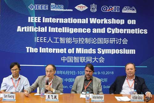 图 2018年6月,在北京举办的IEEE人工智能与控制论国际研讨会,IEEE SMC学会、中国自动化学会、中科院自动化研究所等专家在对区块链、人工智能等概念的热炒降温