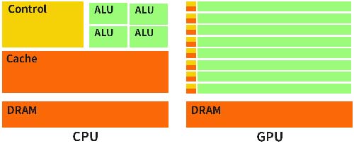 图 GPU比CPU有更多的逻辑运算单元(ALU)