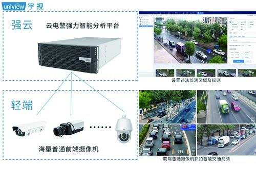 图 『宇视云电警系统』将普通摄像机赋予智能联动,右为基于IMOS操作系统的用户界面