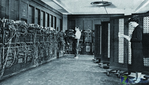 直到有一天,有人用18000只电子管,6000个开关,7000只电阻,10000只电容,50万条线组成了一个超级复杂的电路,诞生了人类第一台计算机,重达30吨,运算能力5000次/秒,还不及现在手持计算器的十分之一。不知道当时的工程师为了安装这堆电路,脑子抽筋了多少回。(图8)