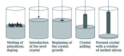 把多晶硅熔化了,按特定方法旋转提拉,就可以拉制成原子排列整齐的单晶硅。(图10)