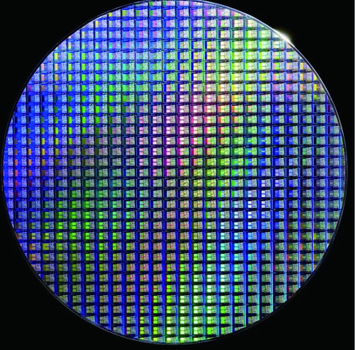 把单晶硅圆柱切片,就得到了圆形的硅片,因此就叫“晶圆”。(图12)这词是不是已经有点耳熟了?