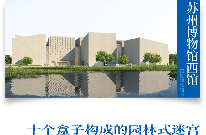 苏州博物馆西馆是苏州博物馆设立的分馆,建筑体由十个“方盒子”形状的分体构成,颇具结构秩序性,致敬主馆设计大师贝聿铭。