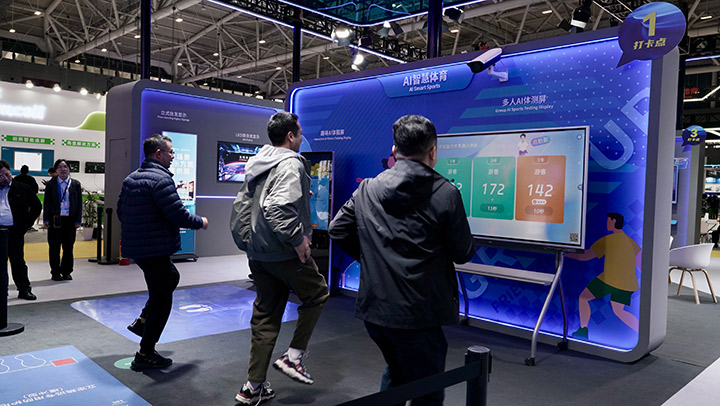 AI智慧屏是面向校园运动的智慧体育边端设备,基于AI骨骼识别算法,实时捕捉跳远、跑步、开合跳等运动轨迹,通过数字化记录学生运动数据,自动生成体测报告,助力校园体育教学从“经验驱动”迈向“数据驱动”。