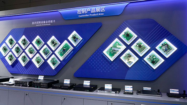 在屏控展区,可以看到分布式拼控与KVM坐席管理系统深度协同,支持和集中式拼控产品无缝接入,打造先进的集分式中枢方案,满足超大规模信号源的无损同步传输,无损画质、端到端零延时,满足指挥调度、数字展厅等高端场景需求。