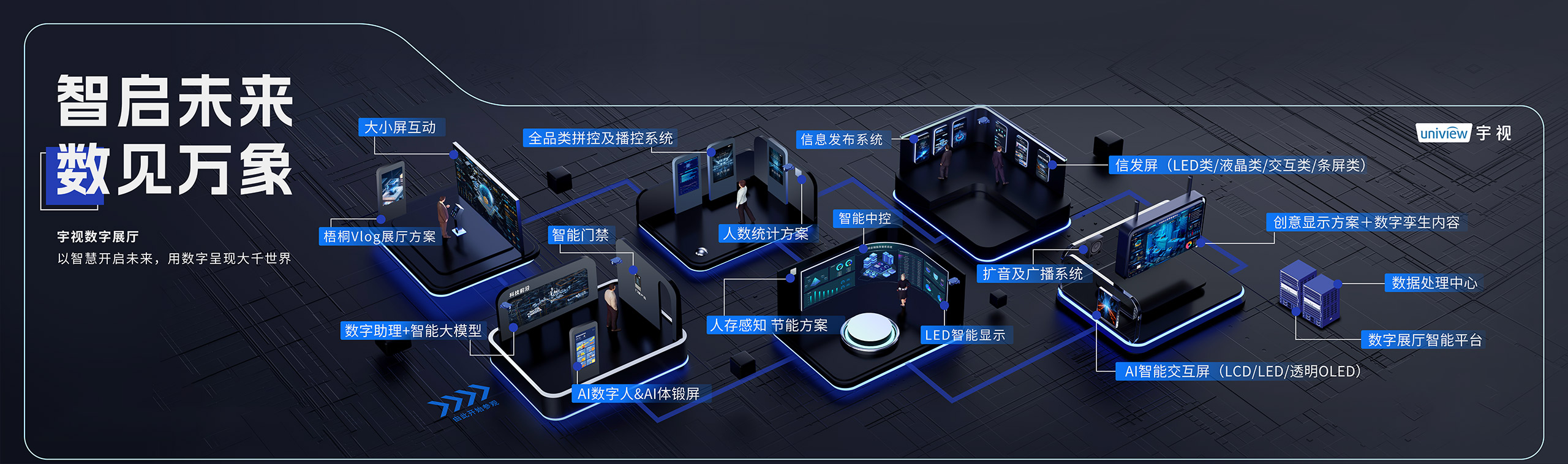 从石墨烯材料革新到AI大模型赋能,从全场景智慧显示产品矩阵到一站式交付服务,宇视正以技术创新重新定义“显示”的边界,赋能企业、教育、文旅、商业、交通、物联网六大垂直行业。未来,宇视将持续深耕“全场景+AI”融合生态,让全场景的智慧显示点亮每个角落。