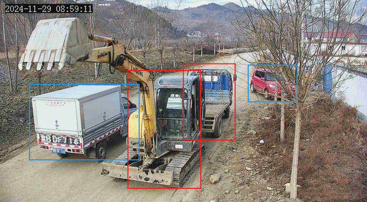系统准确识别货车与挖掘机
