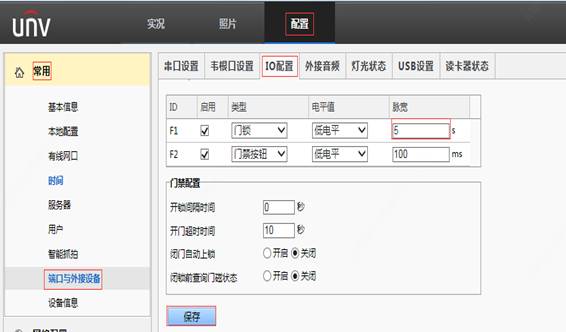 Web登录-配置-常用-端口外接设备-I/O配置-门锁-调节脉宽值5秒