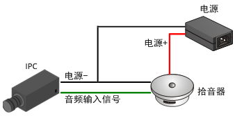 若IPC音频输入为线头,查看拾音器、IPC与电源之间接线是否正确