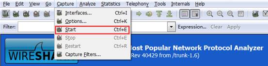 3.点击wireshark--上方工具栏capture--start