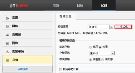 (1) 选择【配置>存储>存储设置】,进入存储设置界面。