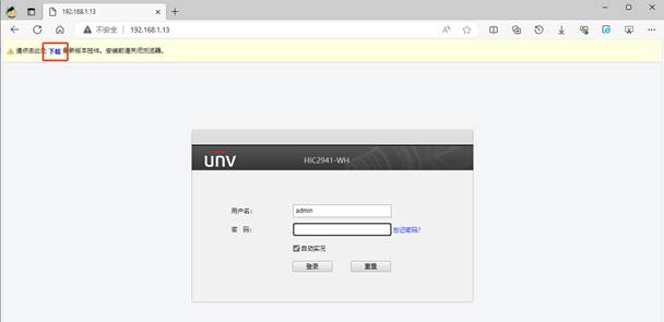 Edge登陆相机默认ip 192.168.1.13 默认用户名/密码:admin/123456